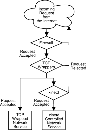 This chapter focuses on the role of TCP wrappers and xinetd in controlling access to network services and reviews how these tools can be used to enhance both logging and utilization management. For a discussion of firewalling with iptables, see Chapter 16 iptables.