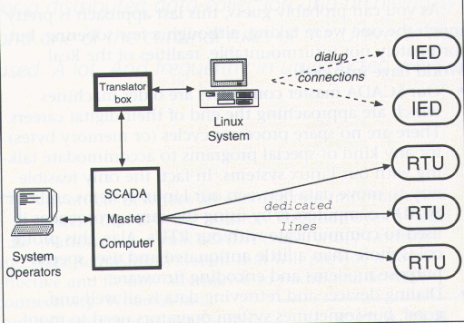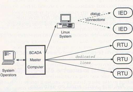 The dialing subsystem has no set limit on the number of phone lines it can handle. If some means could be found to move data back and forth between the SCADA master computers and the Linux systems, a more ideal SCADA system could be constructed, as shown in Figure 3 (see below). This would provide the system operators with a unified overview of their system--all information would be present in the SCADA master computer. Some of it would be retrieved via traditional means (dedicated lines) and the rest would be obtained via dialup connections through the Linux systems.