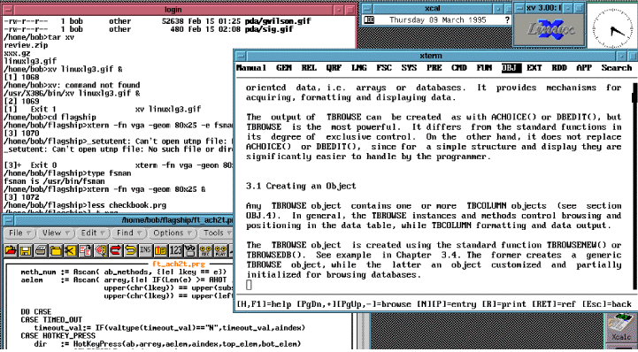 None of these products are available for Linux, although there has been at least one effort to make the SCO version of dBASE V work with iBCS. What we have instead is FlagShip from multisoft Datentechnik GmbH and dBMAN from Versasoft Corporation. Both of these products run on several implementations of Unix; dBMAN also runs on MS-DOS.