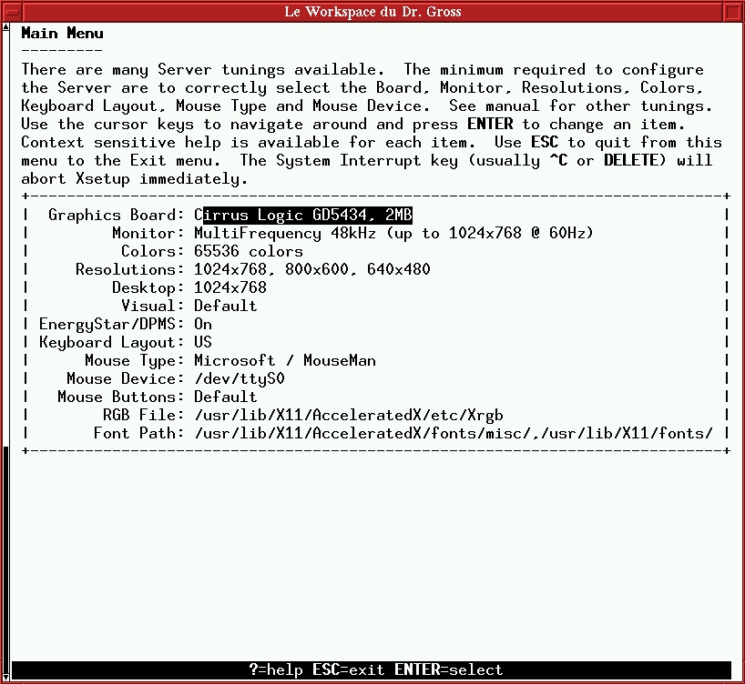Before we get to The Chart, I did notice one interesting thing while I was playing around with the two servers. If /usr/X11R6/bin/X is a soft link to an XFree86 server, such as XF86_SVGA, AccelX will move the XFree86 server to X.LINUX. If, however, /usr/X11R6/bin/X is linked to, oh, say, Xmetro (the Metro-X server), then AccelX will turn Xmetro into a link to Xaccel, destroying the Xmetro server. Hmmmm.
