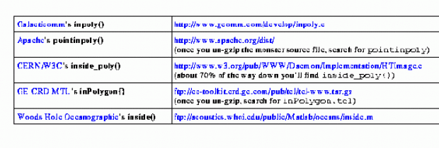 Table 2. Sources of Public Domain Point-in-Polygon Algorithms