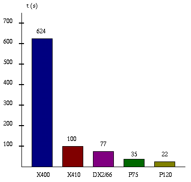 Figure 6 shows the evolution of the automatic marker making performances depending on the architecture used (time in seconds). The old Lectra X400 and X410 computers are based on the 68030 and 68040 processors operating under System V R4. The three PCs--DX2/66, Pentium75, Pentium120--used Linux kernel version 1.2.13.