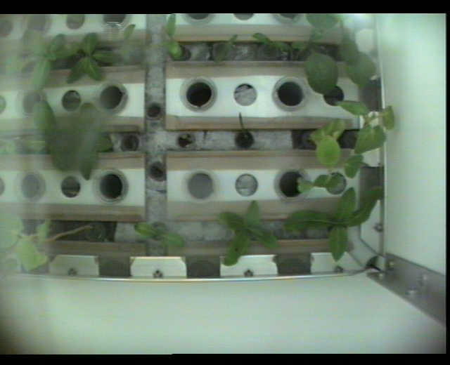 In addition to the numerical data gathered, we are taking periodic pictures of the plants with two miniature video cameras. The cameras are mounted in the ``ceiling'' of the plant-growth chamber (the side with the lights), and their combined field of view covers the entire ``floor'' of the chamber (where the plants are). The NTSC video signals feed to an ANDI-FG board from Ajeco. The ANDI-FG has a 3-input frame grabber, a Motorola 56001 DSP and a megabyte of on-board memory. On request, the ANDI-FG delivers to the host CPU a high-quality JPEG-compressed image. Ajeco has been most helpful, providing a Linux driver and excellent technical support.
