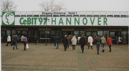 CeBIT is the world's largest computer fair, bringing together vendors and attendees from many different countries. If you picture landscaped fairgrounds with 27 halls for vendors and even more auxiliary buildings with stores and restaurants and then add 650,000 people to the picture, all visiting the location over seven days, you are starting to get an image of CeBIT '97. CeBIT took place in the Messegelände in Hannover, Germany, March 13th to 19th, 1997.