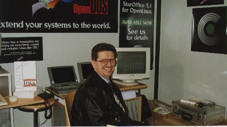 A second Linux stop for me was at the large StarOffice booth in Hall 2 demonstrated on of the company's many different ports, StarOffice on OpenLinux.