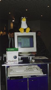 My first stop was Hall 11 to visit Caldera, Inc. Caldera's booth was easily recognizable as a Linux booth because of ``Tux'' the penguin, (well, a stuffed rendition of Tux) sitting on top of one of the monitors. Caldera's booth was crowded with people every time I visited it.
