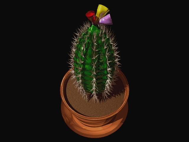 Lighting primitives supported include distant point lights, spot lights and ambient lighting. These are the same lighting types supported by POV and RenderMan. Each type has its own parameters, such as brightness (known as ``intensity'' in RenderMan) and color. Lighting in RenderMan is handled through the use of shaders, so it's possible to create all manner of lights for use with BMRT. Megahedron appears to offer similar functionality, although I didn't delve into this area much.