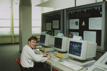 During display, anyone could just walk up to one of them and log in. Then (s)he could playing with the system, start X applications or just browse the local web via Netscape. We also provided a mirror of the latest release of the kernel as well as a Linux distribution which the user could copy.