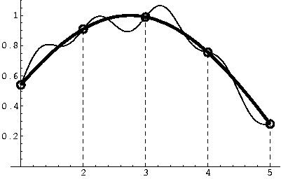We have to work with digital audio, obtained from the continuous mathematic functional model, through two steps: sampling and quantization. The sampling step represents the domain of the function with only a limited number of points. This is usually done through uniform punctual sampling; in other words, we keep the value of the function only at some points, equally spaced from each other. It is clear that some loss of information may occur if by any chance the function varies too much between two adjacent samples (see Figure 2).