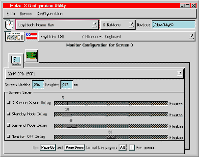 The Monitor button displays a huge list of common monitor types, and automatically creates the allowable frequency range and synchronization. If your monitor isn't on the list, don't worry--there are lots of generic monitor types to choose from. You can even enter the exact screen size and select the screensaver delay time. If you have a energy star monitor, you can set standby, suspend and monitor off.