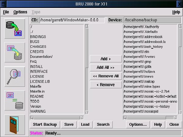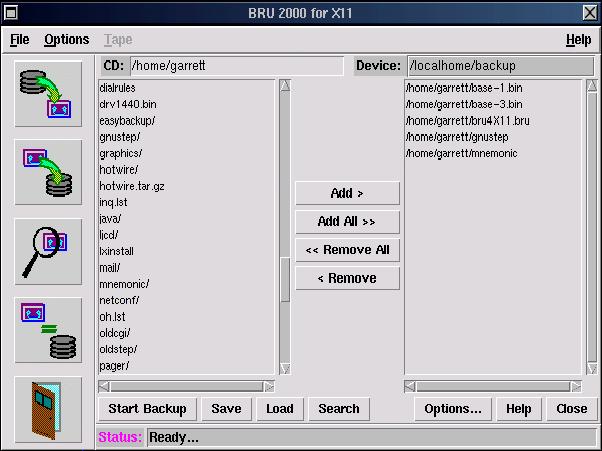 While not the most flashy area of computing, proper backups are essential. BRU 2000 for X11 (xbru) is a user-friendly graphical interface for EST's BRU backup software. It is targeted for users who want to easily back up their computer without having to learn the command-line interface for their backup software. To use the more complex options of BRU 2000, you still need to learn BRU's command-line interface.