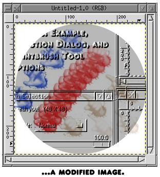 The first row of buttons and the first two buttons in the second row are the Selection Tools: Rectangular, Elliptical, Free Hand, Fuzzy and Bezier. Rectangular and Elliptical draw the respective type of outline as you drag the cursor, left mouse button down, around the Image Window. Holding the shift key down while dragging will form a uniform box or circle. Free Hand will draw an outline which follows the path of the cursor as you drag it. Note that when you release the mouse button while working with the Free Hand selection, the selection is closed between the starting point and ending point of the cursor's path. The Fuzzy select will select a region of an image based on the colors in the region where you click with the left mouse button. This sort of selection works best for images that do not contain gradients or wide ranges of colors over very small areas. The Bezier selection tool allows a region to be outlined in precise detail. The Bezier tool was used to select points on the outline of the monitors (after each point was selected, a straight line was drawn connecting the last two points) on the cover of the November issue, back when part one of this series ran. Once a complete outline is selected, a single click on the inside of the selected region activates that region and the marching ants began their dance around the selection's outline. Bezier selections can also be used to select outlines of very jagged regions, but the method for doing so is beyond the scope of this article. Note that all the Selection Tools have configurable options. They all support anti-aliasing and user-defined feathered regions.
