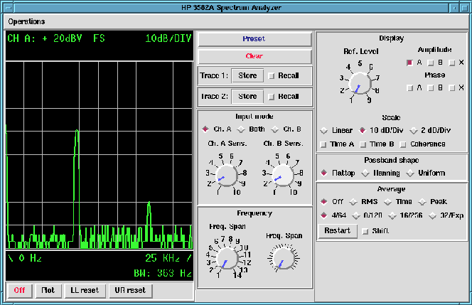 The bluffing worked out one hundred percent, and I held four aces in one hand and a full house in another. Stop? No way! It occurred to me that I could create a user-friendly interface to the HP3582A spectral analyzer using Tcl/Tk power.