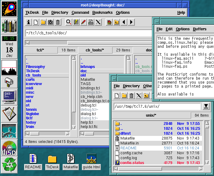Don't want to give up your Macintosh or Windows desktop for Linux? With TkDesk you don't have to.