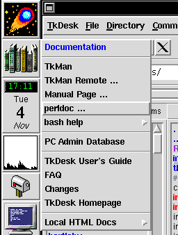 Rather than provide a user's manual or specific customization tips, which you can learn by reading TkDesk's excellent documentation, I'll describe in this article why I think TkDesk is such a useful and important Unix tool. As an example, this morning I logged into my computer through xdm. All I have scripted to start automatically is TkDesk and a few utility applications, like xautolock and xsysinfo. After seeing the TkDesk startup screen, I am presented with the AppBar (see Figure 1) and a few file browsers (see Figure 2), positioned where I left them the last time I was logged in. From the mailbox icon I see that I have e-mail. Clicking the mailbox starts exmh, and I read the messages that have arrived since yesterday. Someone has found an error in a CGI script. Figuring it won't take long to find the problem and fix it, I start up XEmacs and Netscape, again by clicking icons in the AppBar. I point one of my file browsers at the directory containing the CGI script and another to a development directory. By clicking and dragging with mouse button two, I make a copy of the script into my development directory (see Figure 3). I then drag this copy onto the XEmacs icon in my AppBar, which loads the script into my previously started XEmacs session. Looking through the code I realize that I may have flipped the arguments to a CGI module function that I called. Clicking with button three on the Library icon in the AppBar shows my customized documentation menu (see Figure 4). I select the reference to my locally installed Perl documentation. A Netscape window opens up listing the directory and I click on the cgi.pm.html link. Seeing my error, I make the necessary changes. I also need to check another Perl script. This time, instead of dragging the script onto the XEmacs icon, I click the file once to select it, then choose the ``Open File New Frame'' I have configured under the XEmacs menu. This creates a new XEmacs window displaying the script.