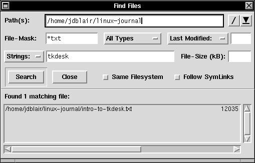 I hope that TkDesk is not the last word in GUI desktop managers for Unix and, in particular, Linux. Several other projects, like the K Desktop Environment and GNUStep show much promise. Just as TkDesk currently demonstrates, I think the future of GUI design lies in tying the widgets that these projects provide to a flexible scripting language like Tcl, GUILE or other scheme variants, Python or some yet-to-be-invented scripting language. The success of the GIMP project is another testimony to the success of this type of design. For now, though, TkDesk is the ruler of my desktop.