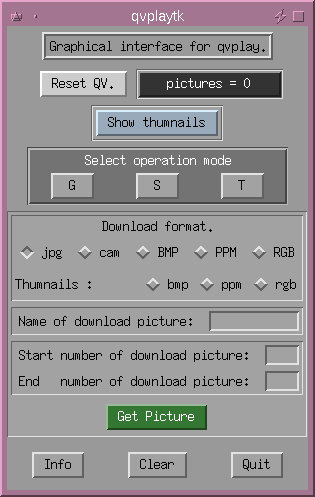 As a Tcl/Tk script, qvplaytk is very easy to configure and adapt. For example, you might like to change the obscure ``G'', ``S'' and ``T'' buttons to ``Get'', ``Save'' and ``Take''.