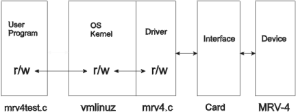 fid = open("/dev/mrv4", ...); read(fid, ...); write(fid, ...); ioctl(fid, ...); close(fid);