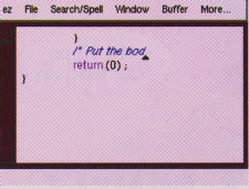 When you first edit a C program, you will see something like Figure 1. You see immediately there are many things to make the program easier to read: