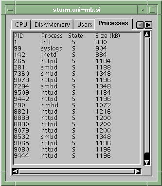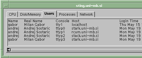 On the client side, one must run a starting applet to bring up the basic window in which all the computers to be monitored are listed (see Figure 2). Once we choose a computer's name from the list, a second window appears containing all the information about the observed system. We used a tabbed panel to display different types of data. We've chosen a tabbed panel to ease the upgrade procedure. If we add new system information, there is no problem with the graphical interface--we simply add a new panel.