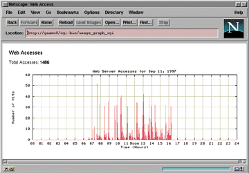 http://myserver/cgi-bin/usage_graph_cgi?11/Sep/1997If all goes well, and there's no reason why it shouldn't, the user should see a page that looks something like Figure 1.