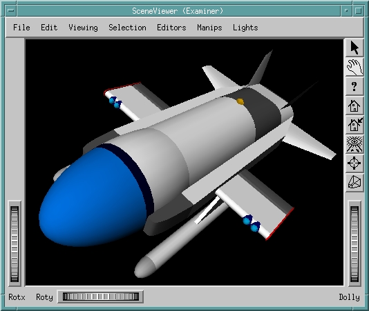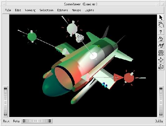 Inventor comes with a number of standard node editors for modifying the scene. Figure 3 is a typical model (without any alterations) in SceneViewer, a demonstration program that comes with the Inventor distribution. For a little more information about the figure, see the sidebar ``A Bit About Figure 3''.