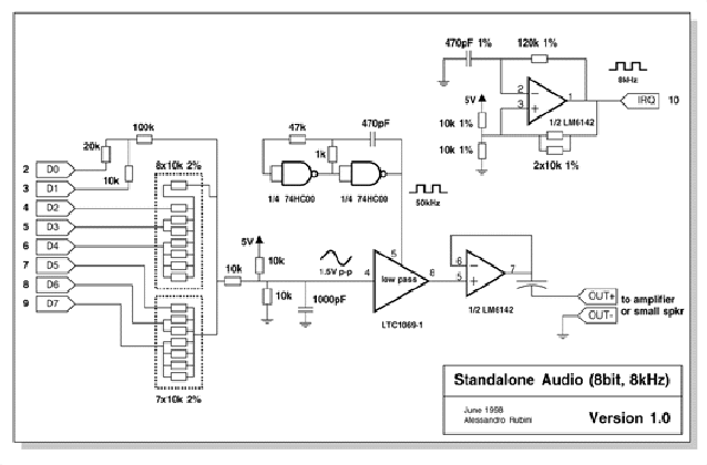 The software described here, as well as the electrical drawing, is released according to the GPL and is available as sad-1.0.tar.gz (Standalone Audio Device) from ftp://ftp.systemy.it/pub/develop/, my own ftp site.