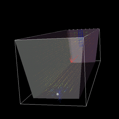 The code in Listing 2 creates the visualization shown in Figure 2. This pipeline does not include the code to make the boundaries visible. We will cover that next. The key features of this pipeline are the multiple sources (mesh data, sphere) presented in one scene. The sphere is placed on the node with the nearest neighbor in one of the three coordinate directions mentioned above. The polygonal data represented by the vtkPolyData object called mesh consists of two-point polygons, i.e., lines. Polygonal data is often read in with a reader or created automatically by a source or filter such as the vtkSphereSource (Listing 1) or a vtkContourFilter. Notice that the mappers for the mesh and for the sphere are different. The mesh mapper takes the mesh directly as input, but the sphere mapper operates on the vtkSphereSource, which is not vtkPolyData. The reason for this is that the mapper reads vtkPolyData as input. The mesh is vtkPolyData. The sphere is a source which can send out vtkPolyData, when requested, as we do when employing the GetOutput method on the vtkSphereSource.