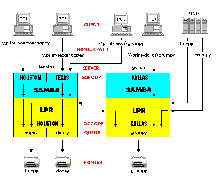 print-dallas with the print server gollum.