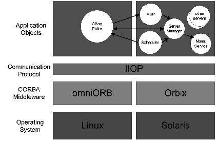 ABng poller is able to cooperate with other parts of the system via the standard socket services or through the CORBA interface. This feature enables a smooth transition from the old ANSAWare-based location system to the CORBA-based ABng. Object Request Broker functionality is ensured by the omniORB which, although free, has performance levels hard to beat by the commercially available CORBA-compliant products including the industry leader--Orbix. An important feature of omniORB is its portability; it runs on most modern operating systems, including Linux.
