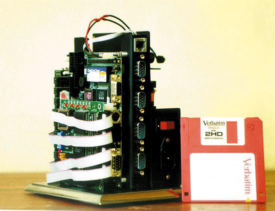 In the ABng project, we use PC/104 modules manufactured by Advantech. Products manufactured by Advantech fall into several groups, from which we use two: Biscuit PCs and PC/104 modules. Biscuit PCs are a family of small, highly integrated single board computers designed for all sorts of embedded applications, and are equipped with the 80x86 processors--from 386 to 586. Since the ABng poller runs in a distributed environment, it was crucial to have an Ethernet controller on-board. Other components, such as a VGA adapter, printer port or floppy interface, are not necessary but are quite helpful in early development stages.