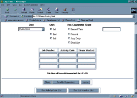 Many of the powerful web-based applications that were developed so rapidly and at such low cost by my group at Ruppman quickly caught the attention of other departments. Accounting had been trying to implement technology to automatically track employee labor, and had been burned by their experience with an expensive and unsuitable vendor product. They asked us if we could implement a solution. We quickly put together a system that kept increments of time and the codes identifying tasks in a PostgresSql database on a Linux server. Employees can enter their hours through a web interface driven by Javascript and Python CGI, hosted on the Linux Intranet web server (see Figure 2). They can also view the results in a familiar time-sheet format. Supervisors can then review and approve the entries. Once a week, a cron job computes overtime and sends a report of the approved records to accounting, where they are imported into the JD Edwards accounting software.