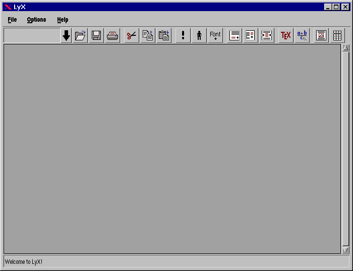 You will be welcomed by a window like the one shown in Figure 1. Looking at the LyX window, you will be reminded of any standard word processor. That's the main reason I think users who have been reluctant to use LaTeX will be encouraged by LyX to make the transition.
