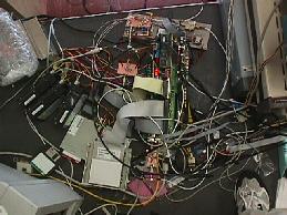 We use up to five laptops on the SRA at once: three for collecting GPS data (one laptop for each GPS receiver) and two for control and display of real-time SRA data. A personal laptop is used for control, and if we're both on the flight, we can both run several instances of the same display programs using another personal laptop. We each have our favorite color-bar for the image of the sea. We'll frequently use one machine to control the SRA and the other to write or modify display or system software as we're flying. The laptops are Chembook 9780s. Each has a 4GB internal hard drive and a modular 6.4GB drive (in place of the floppy), a 14.2'' XGA LCD display, PCMCIA Ethernet card and a 233MHz Pentium-Pro CPU.