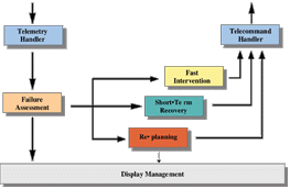 Short Term Recovery: this function is used in situations where recovery allows a period of time between 5 and 15 minutes. The goal is to stabilize the mission, and afterwards to start the Replanning function once that situation is reached. If safety is not compromised, different Short Term Recovery actions can be launched: force switching of some equipment to the redundant ones, quick study of the impact of the coming maneuvers, activation of a short sequence of maneuvers, etc.