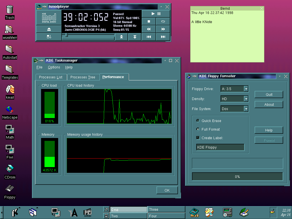 Figure 1 is the screenshot that sold me. Compared to KDE, my old standby, FVWM, looked downright humble. I vowed to get KDE as soon as possible.