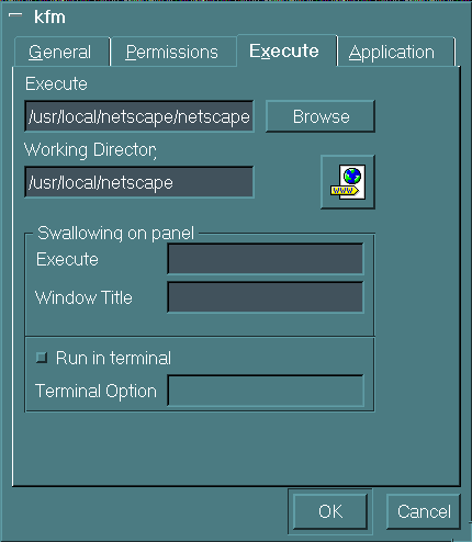 On the left border, open the ``Templates'' folder. Select File->New->Program. In the KFV dialog's ``General'' tab, change Program.kdelnk to Netscape.kdelnk. In the ``Execute'' tab, type in the path to the Netscape executable and specify an appropriate working directory. Click on the icon that seems logical. Click OK, and you are done. (See Figure 2.) Remember, don't double-click on the Netscape icon unless you want two browsers to open.