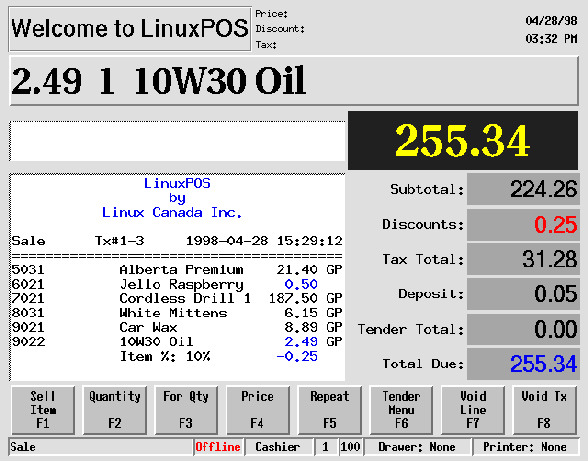 With a little ingenuity and a few years of Linux experience, I was able to deliver a strong, reliable solution without much custom programming. Many people get stuck on how free Linux is and toss a computer together from old or cheap parts. This is fine for testing it out at home or in your office, but when it comes to delivering solutions, quality parts make all the difference in the world. So the next time someone asks you ``Can Linux do...?'', search the Web--the answer is most likely there. LinuxPOS was just sitting out there waiting for a great opportunity like this one.