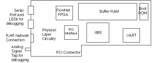 The second Linux feature that helped immeasurably was kernel modules. Because device driver code is kernel code, it was not possible to run it as an application. Without modules, device drivers have to be tested by compiling them into the kernel and rebooting. This adds time to the development cycle. With kernel modules, kernel code can be dynamically linked and unlinked, reducing the testing cycle to less than a minute. We built a kernel module for FlowNet that loaded the card's firmware through the PCI bus during initialization. This made it possible to recompile and restart all the FlowNet software with a single make command. As a result, all of the software for FlowNet was developed in less than three months.