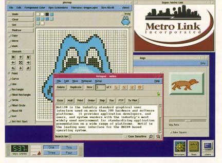 The installation was done on an Alpha station running Debian 2.0 and a Pentium running Caldera OpenLinux 1.2. The installation on the Alpha went smoothly, with only the text stopping in mid-sentence in a dialogue box causing any disturbance. The x86 installation went reasonably well also. Metro provides an easy-to-use GUI installation program, as well as instructions for doing it on your own. They provide both RPMs and tar archives; I chose the RPMs. The GUI leads you through the questions on which versions you want to install, selects the appropriate RPMs and installs them. Metro runs the RPMs in a text widget which allows them to display the output text from the RPM. In my case, I had two package conflicts, xbmbrowser-5.1-1 and Pixmap-2.6-1. These caused an RPM to fail to install; however, the GUI doesn't scan the displayed text for errors, so when you move to the next screen, nothing tells you the installation has failed. I think this is a flaw in an otherwise great installation, and Metro Link should have the GUI clearly display whether the installation was successful on completion.