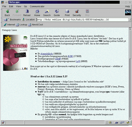 The example in Figure 4 was done with an external file holding all the text of the page. I named a field ``webpage'' and put it in the database, then inserted this in the template for the product page: