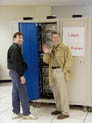G.P. took us on an extended tour, beginning with the top floor of the main building, looking out over the collider rings. ``As far as you can see in every direction is Fermilab'', G.P. said. It was an impressive sight. He then took us to see the collider detectors (see Figure 4)--``It weighs only 100 tons and cost about 100 million dollars.'' Finally, we visited the computer room, where the Linux Farms were going to be placed (see Figures 5 and 6). Fermilab calls their systems ``Farms'' rather than Beowulf systems. They have master machines that delegate the work to many slave processors, connected by high-speed networking and switches. They are not planning on buying the 2000 CPUs until very close to the time they need them. After all, prices keep dropping and capabilities keep increasing, so why not wait until the last moment to get the best ``bang for the buck''?