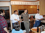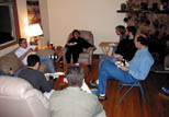 After a significant amount of time answering questions and signing autographs, our little troupe went to the home of Jeff Gerhardt to enjoy pizza and ``refreshments''. We were greeted by smoke rolling out of the front door, reminding everyone it is best to take the pizza out of the box before warming it in the oven. When the smoke died down, some interesting home brew made its way to the front, and everyone enjoyed the pizza and brew (see Figures 7 and 8).
