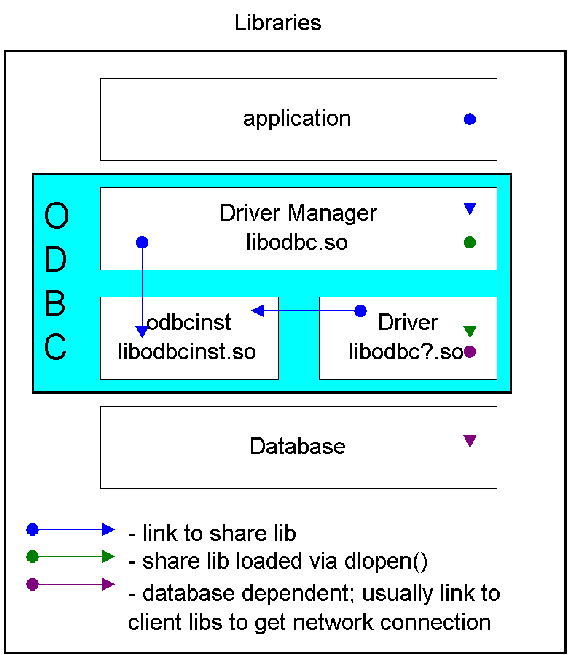 This share library is the hub of most ODBC activity, but its function is simple. Ninety percent of the Driver Manager's function is to validate arguments, load and unload drivers and pass the call to the driver in a manner consistent with the ODBC specification. Normally, an application links only to this share to get the ODBC support it requires (see Figure 1). The Driver Manager loads/unloads the appropriate driver and passes calls to the driver.