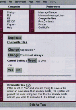 One thing to keep in mind is that preferences are only read when an application initializes. If you change the ez BackgroundColor, for example, this will not take effect until you start a new ez from the command line (from an xterm or typescript).
