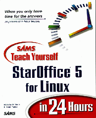 Teach Yourself StarOffice 5 for Linux in 24 Hours is a well-written book that claims to teach you, in 24 one-hour lessons of a chapter each, how to use StarOffice, a complete office suite from StarDivision.