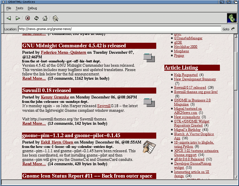 Figure 5. Updated GNOME Screenshot: New HTML Engine