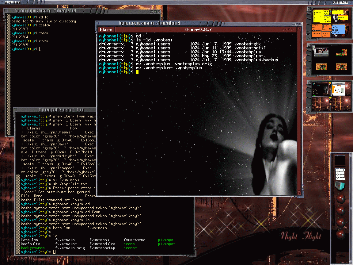 Now you have a simple Xclients file and you're ready to start your X session. If you use a graphical login, you're all set. Your new configuration will start up on your next login. If you use a text console login and manually start your X session, just type startx. In either case, should you get lost or confused and want a quick exit, you can type CTRL-ALT-BACKSPACE to kill the X server and return to either the graphical login or text console. Quick Tip 2: remember that CTRL-ALT-F2 should take you to a text login console, and CTRL-ALT-F7 should take you back to your X session or graphical login.