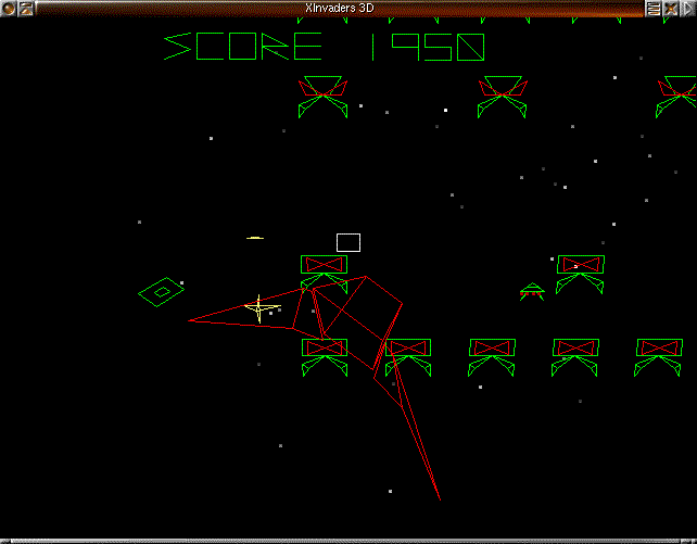XInvaders 3D (see Figure 1) from Don Llopis is Space Invaders with a twist, a warp, a new dimension. Yes, that's it, a new dimension: when the aliens come at you, they come at you. If you were a fan of the original, you'll be amused to no end by this one. The game is fairly new, so it's not perfect; for example, the graphics don't scale automatically to the size of the window, and there isn't music yet (I suspect a MOD soundtrack just might be on the way). Other than that, it's an awesome take on a classic design. Just wait for the filled vector graphs, texture maps, real-time ray tracing. See http://www.fiu.edu/~dllopi01/xinv3d.htm.