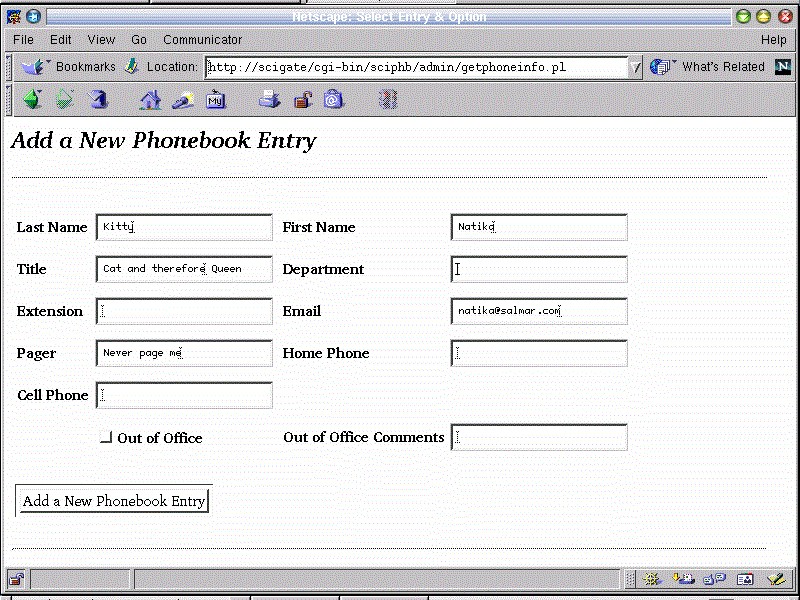 You might also consider changing the available fields. For instance, the IN/OUT board aspect of the directory may not be for you. Perhaps you need another field. With the scripts provided and a little time, modifying this telephone directory to suit specific needs should be quite simple.
